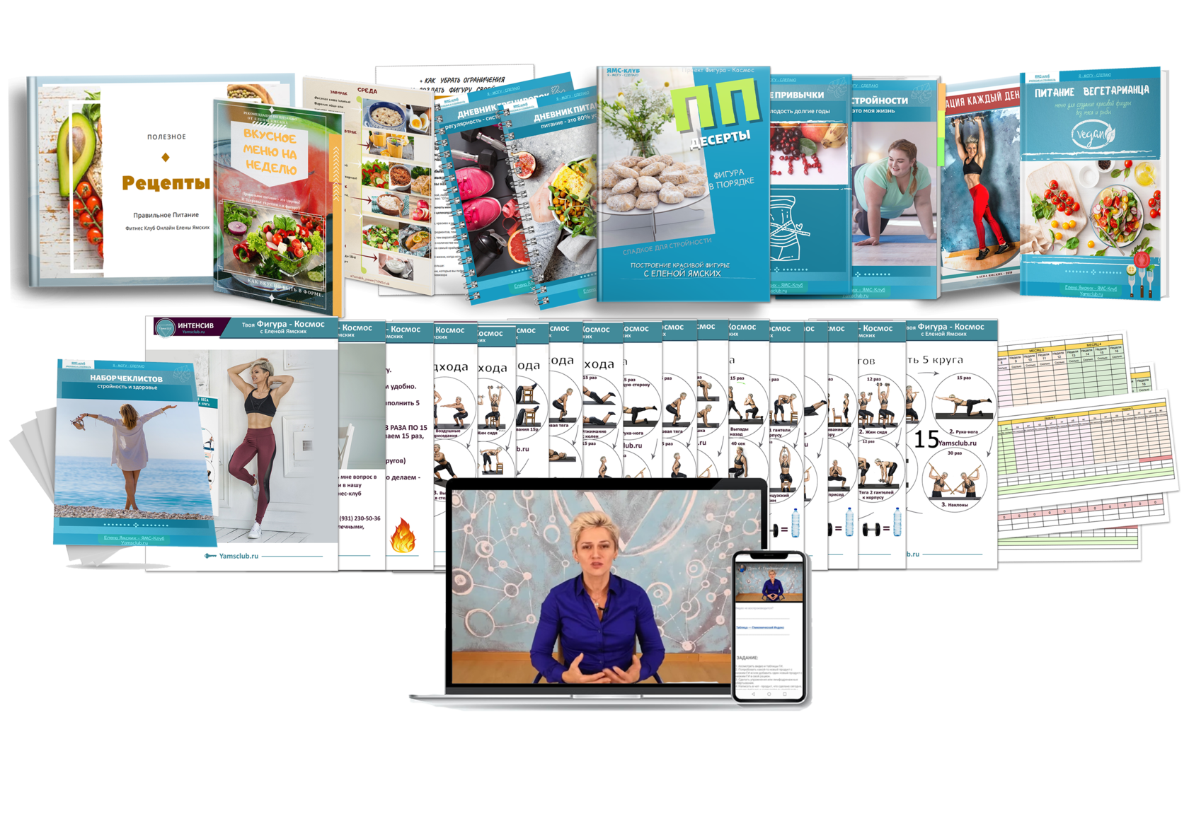 - КУРС Интенсив - Ежедневные тренировки в графике (15 дней) - Дневник Красоты - Как убрать ограничения и создать фигуру своей мечты + сама себе тренер - Мотивация на каждый день - Таблицы Режим дня для здоровья и стройности - Сборник ПП-рецептов - Вкусное Меню для похудения на неделю - Питание вегетарианца для стройности - Методичка: Победить целлюлит - Тренировки для похудения в графике (Новички и продвинутые) - Сборник ПП - десертов - Дневник питания - Дневник тренировок - Дневник здоровья - Уроки по питанию - Занятия по технике упражнений Обычная стоимость комплекта (без акции) 5500р